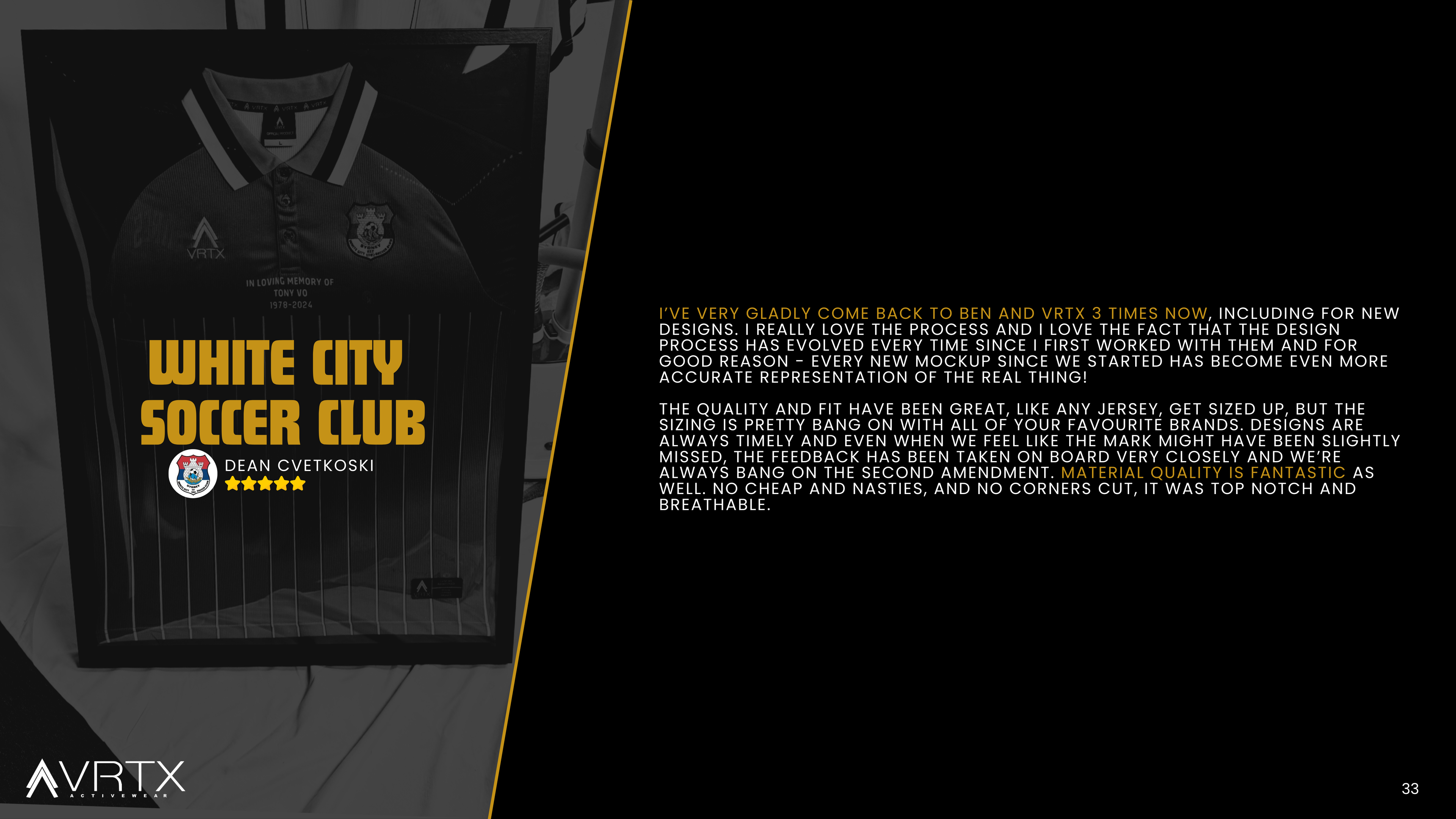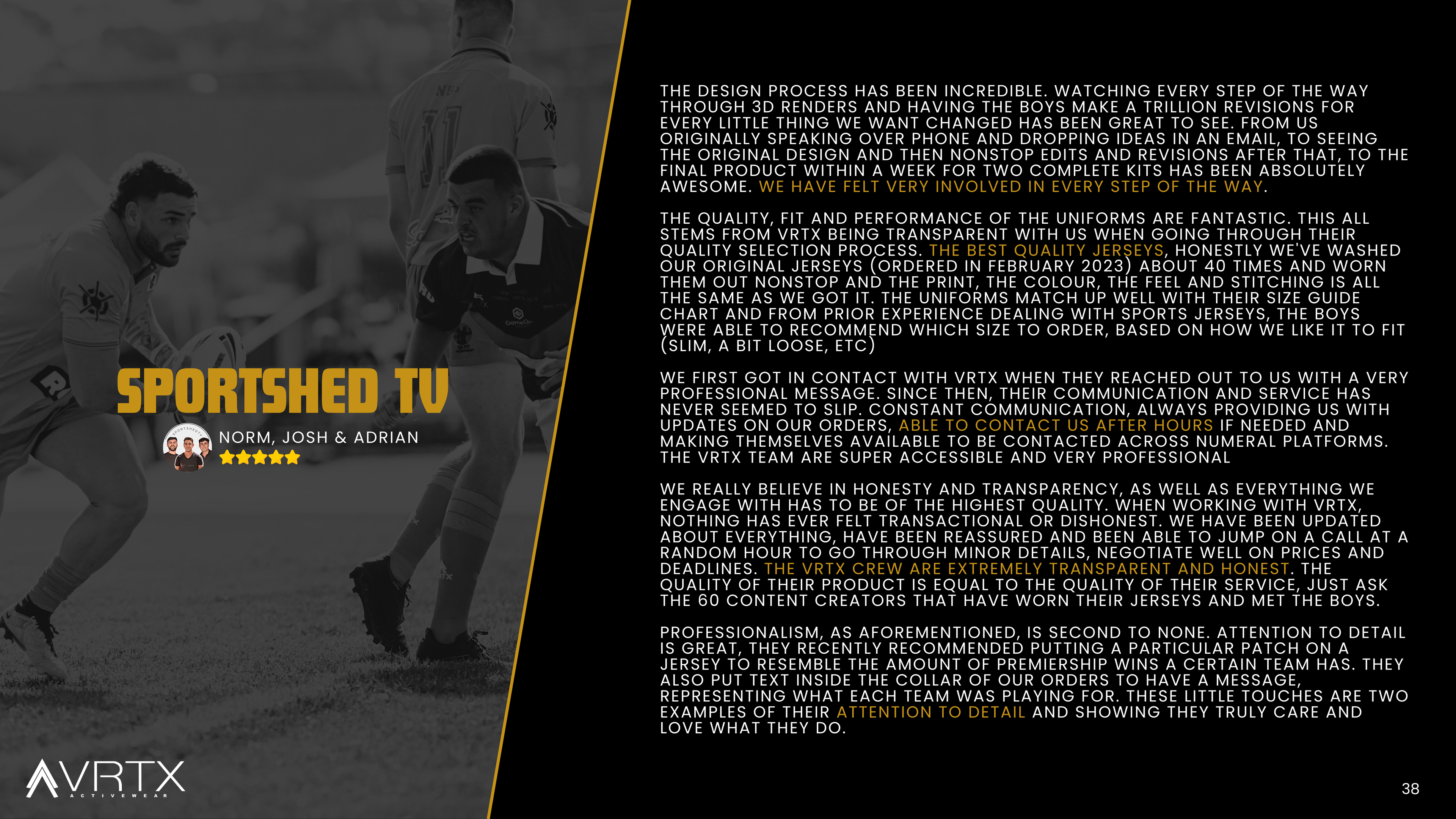 VRTX was created because we were sick of getting burned by suppliers who promised the earth but delivered nothing. Jerseys that arrived late. Colours that did not match. Having to chase replacements as the committee was left making excuses.