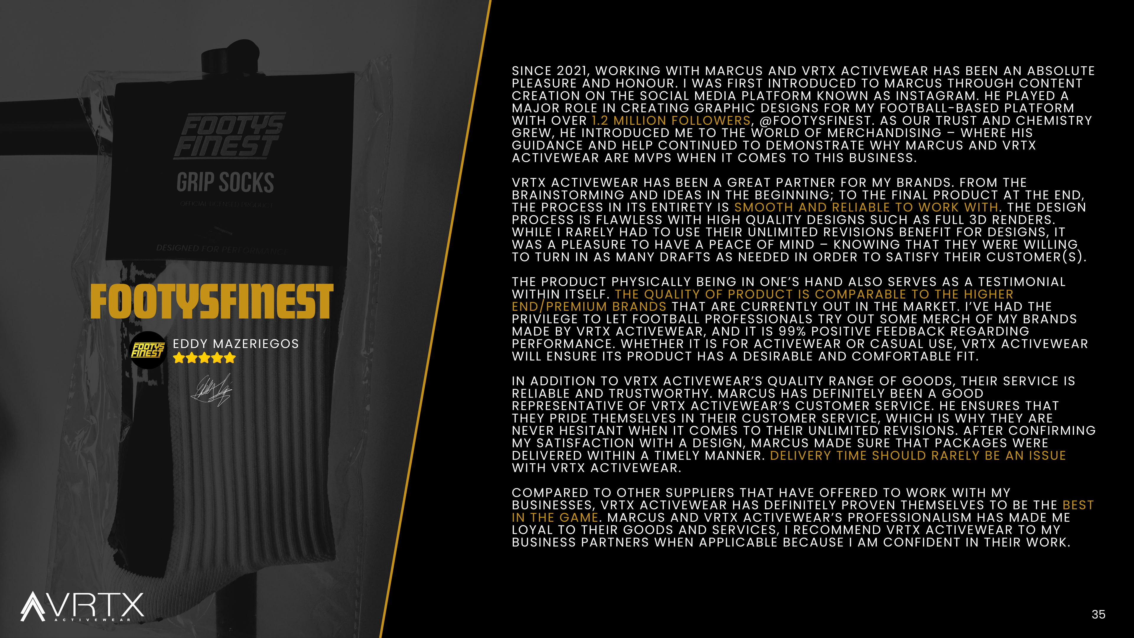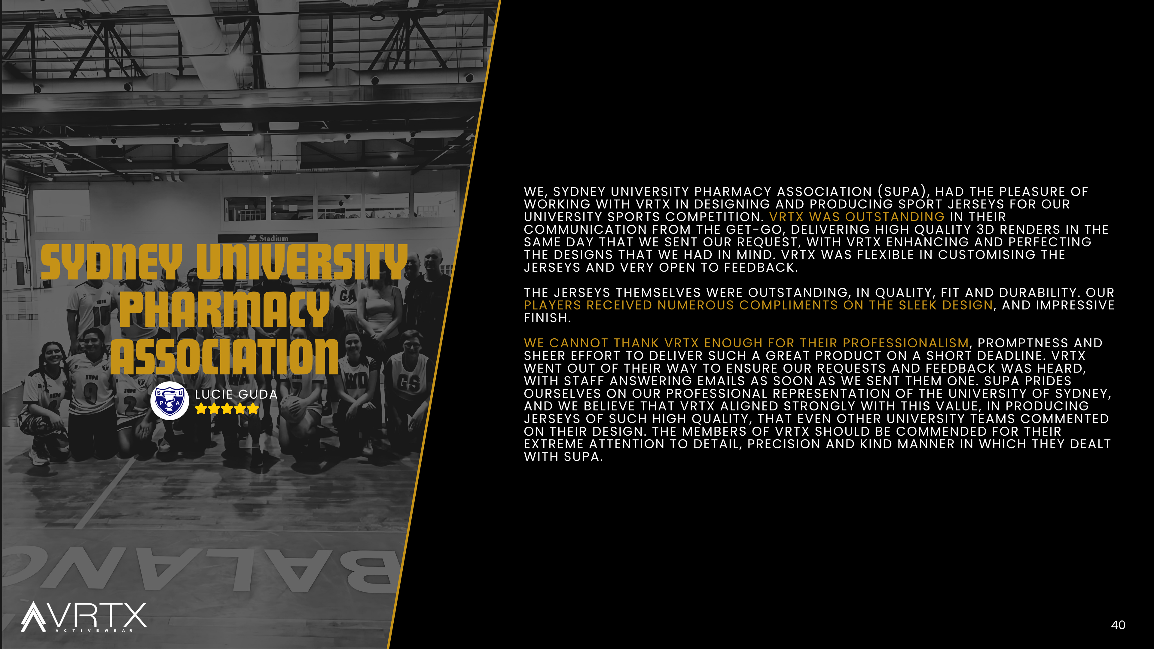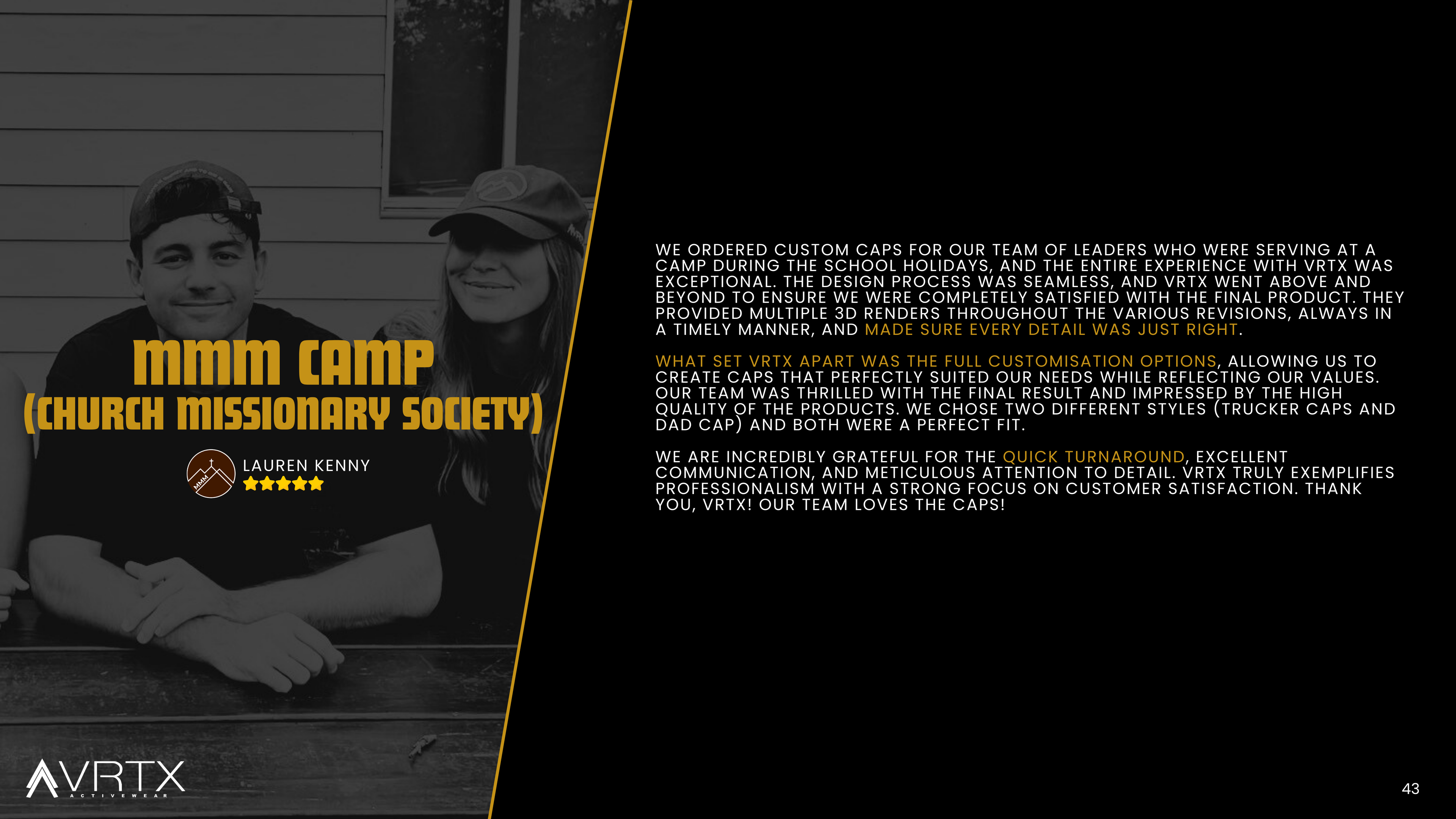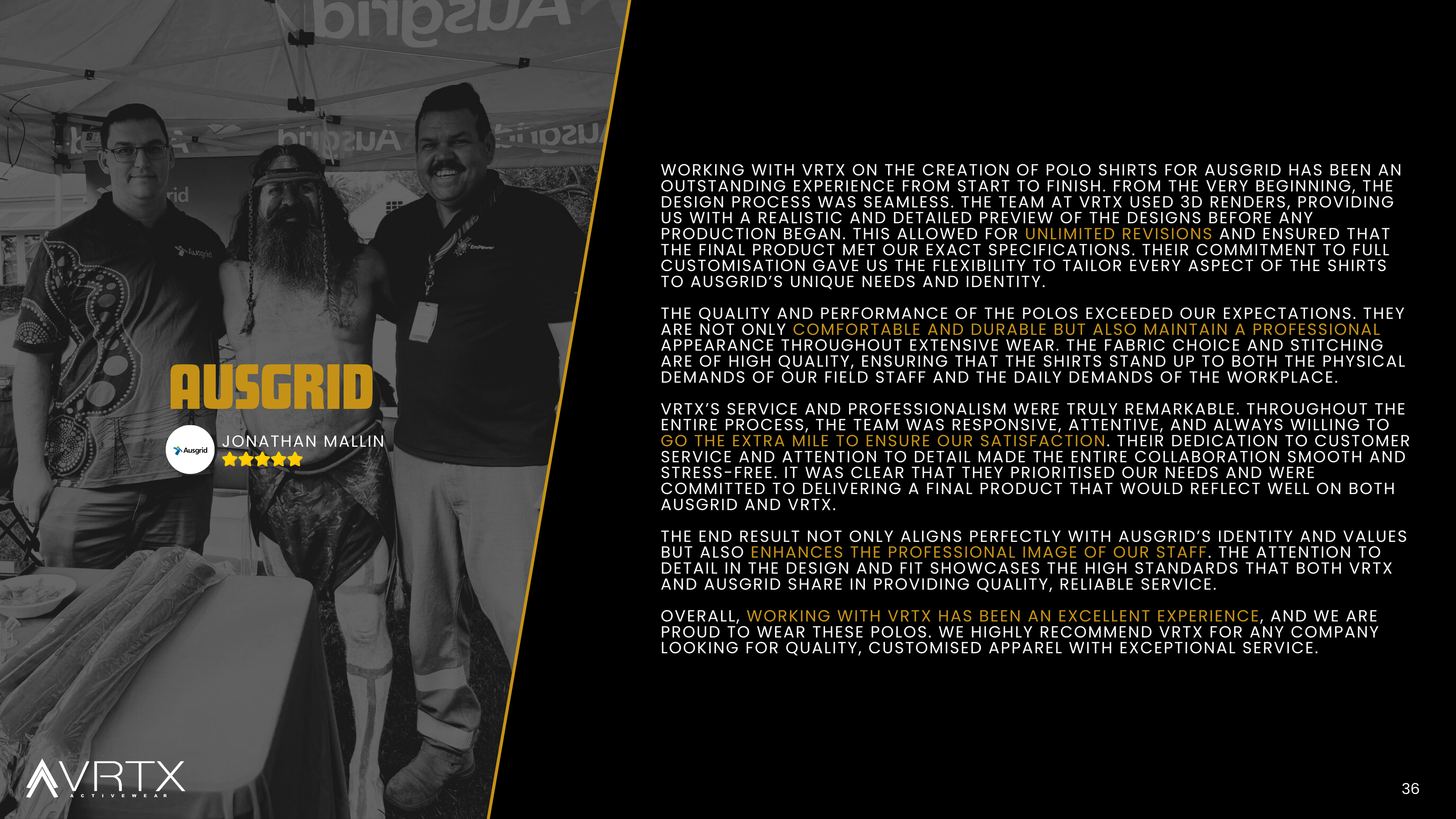 - Proven Track Record. Dozens of organisations already trust VRTX. We’ve been in business half a decade. Our testimonials show one thing: we deliver on time, every time, with pro-level gear that lasts.